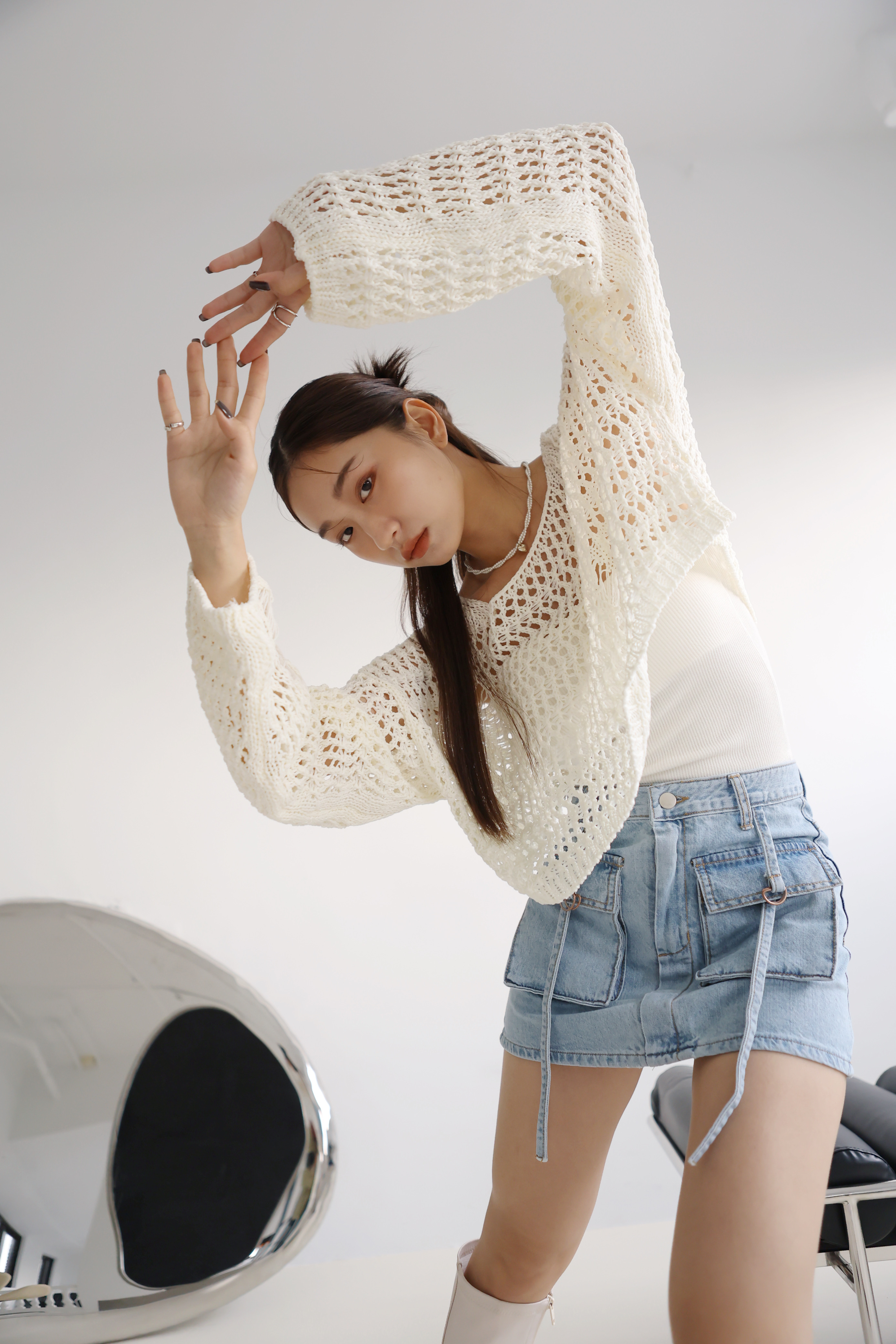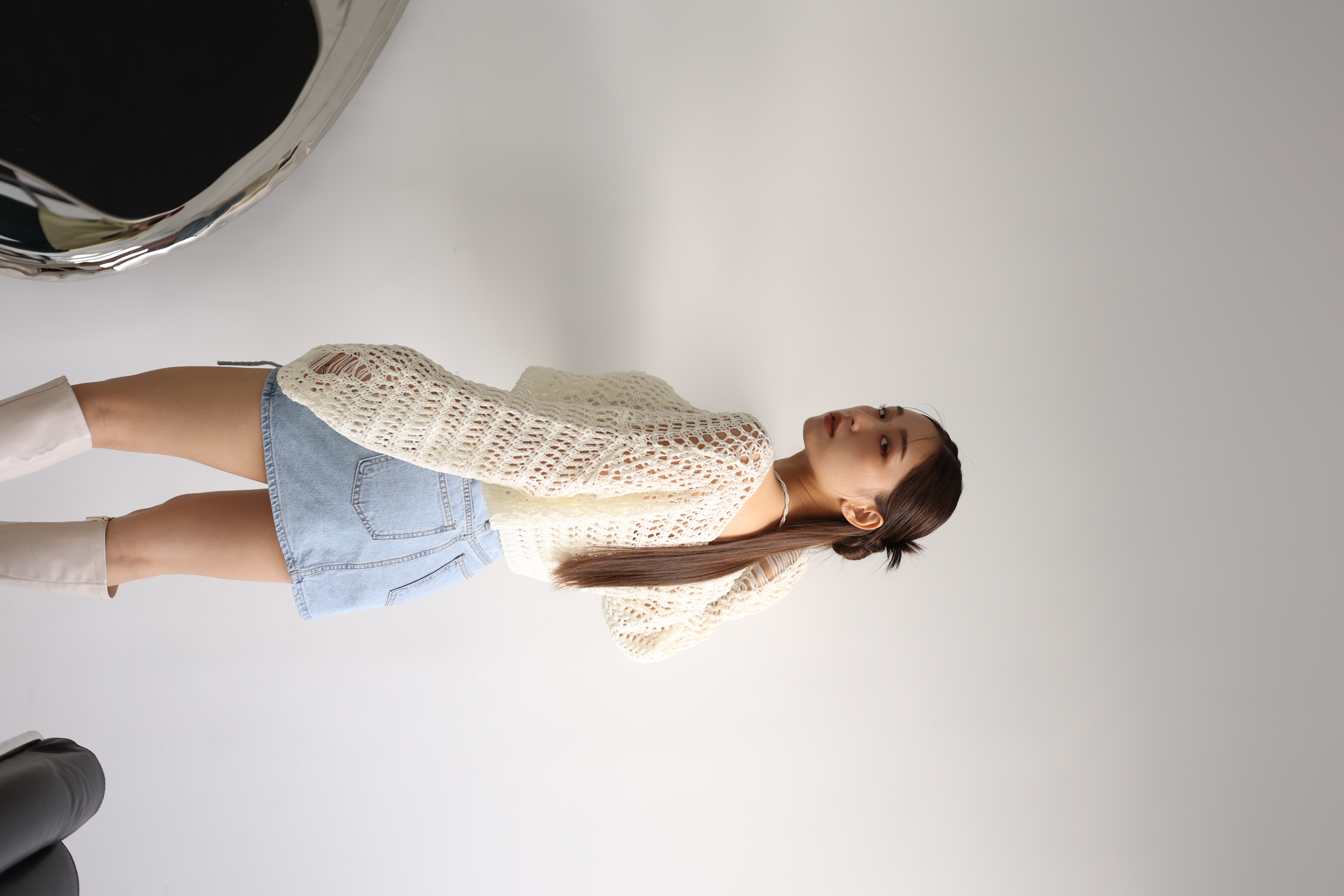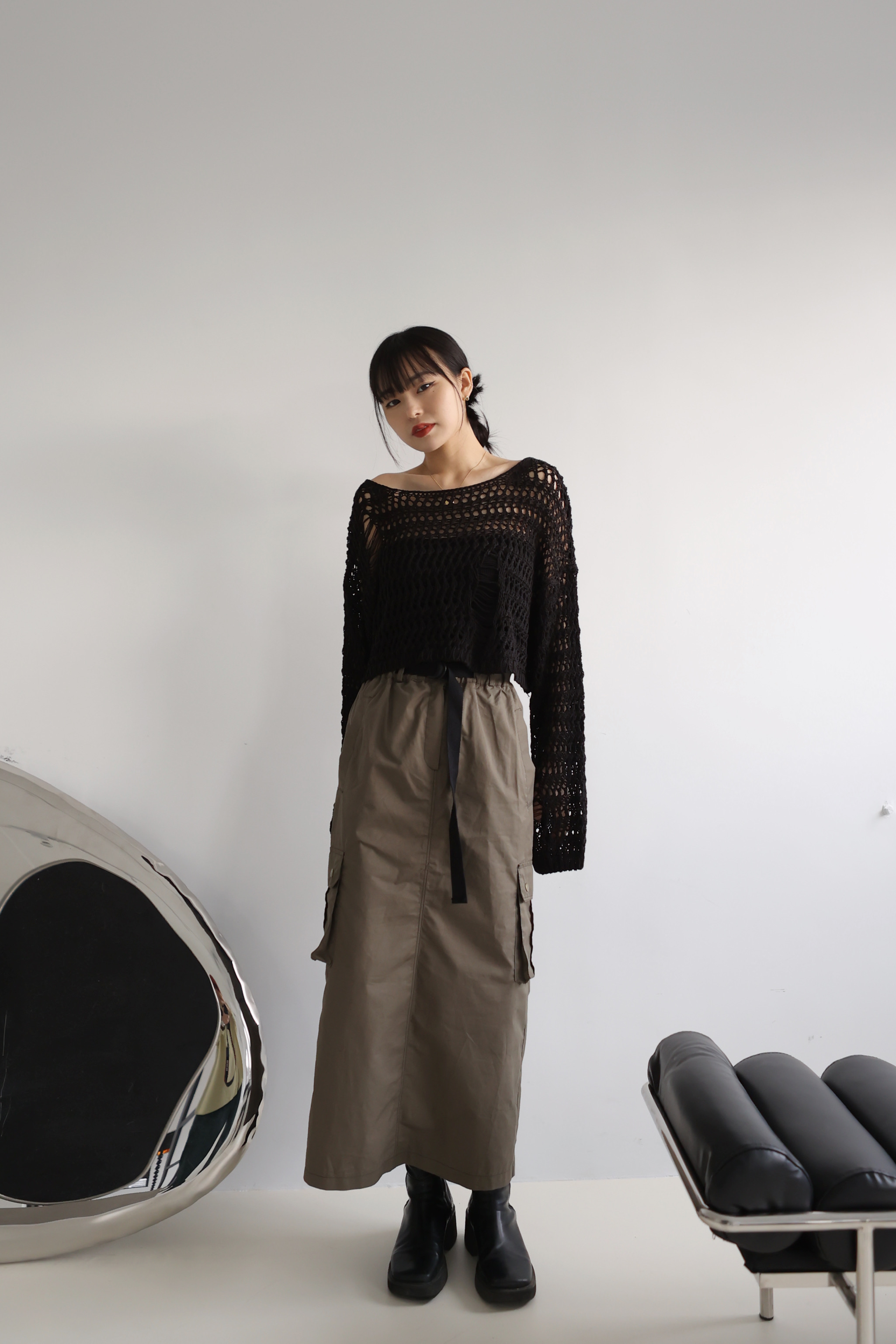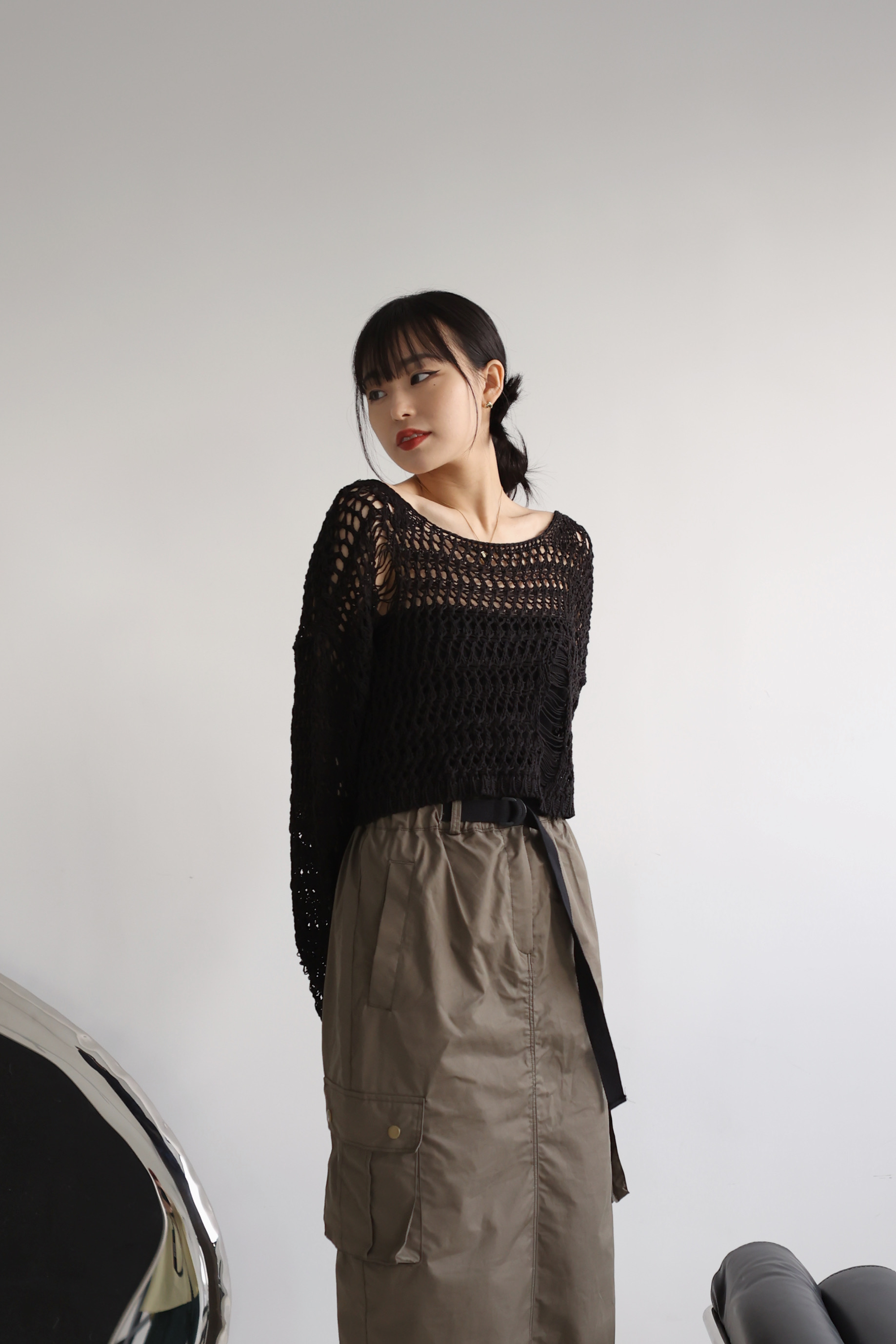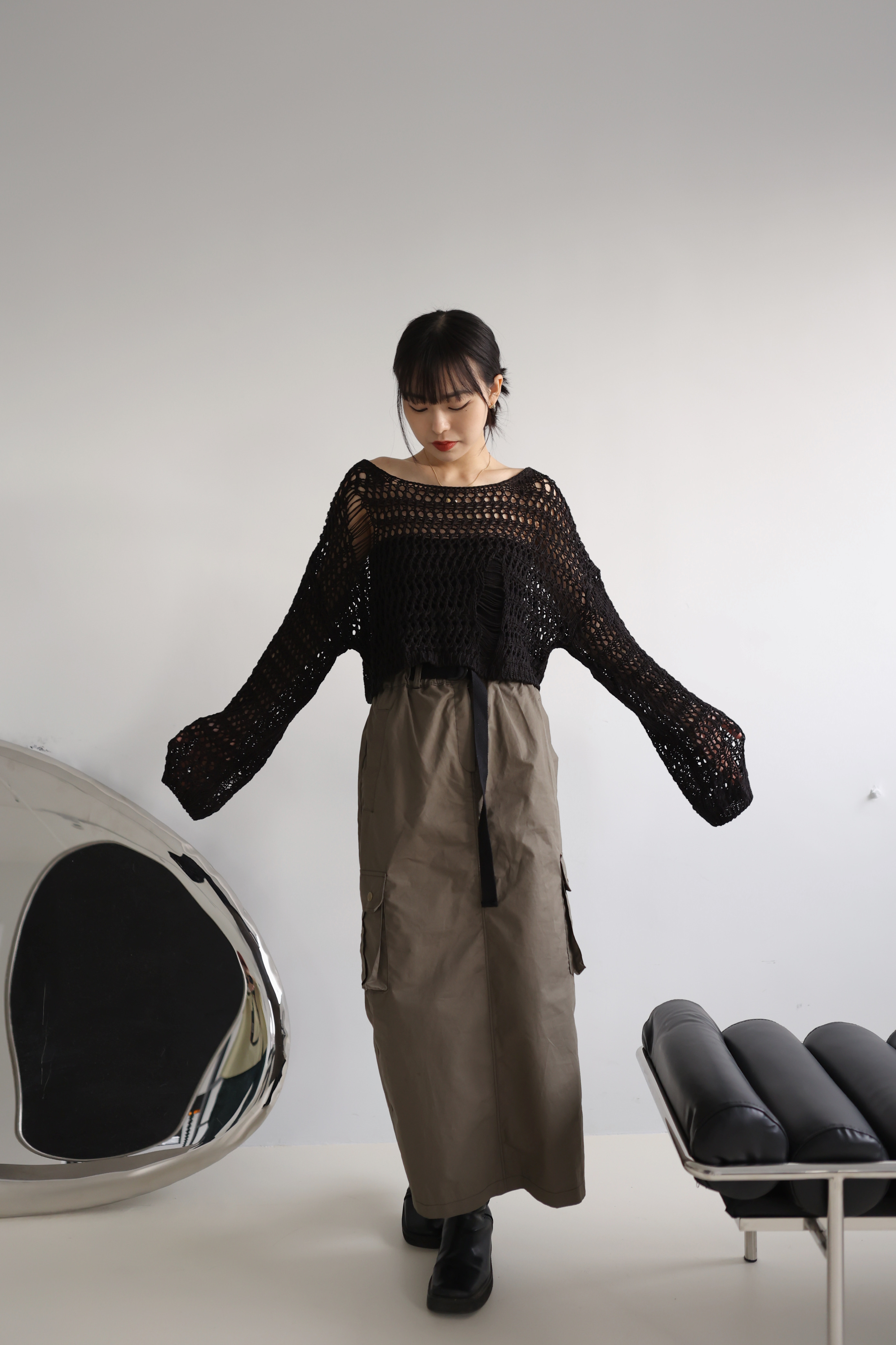 Loose Crop 罩衫上衣(黑/米白)