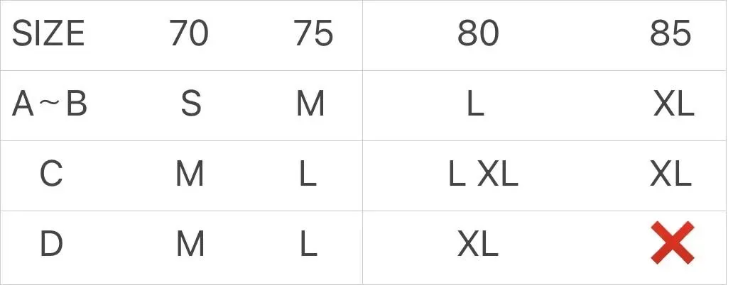 下胸圍介於兩尺寸之間 以最大號為主